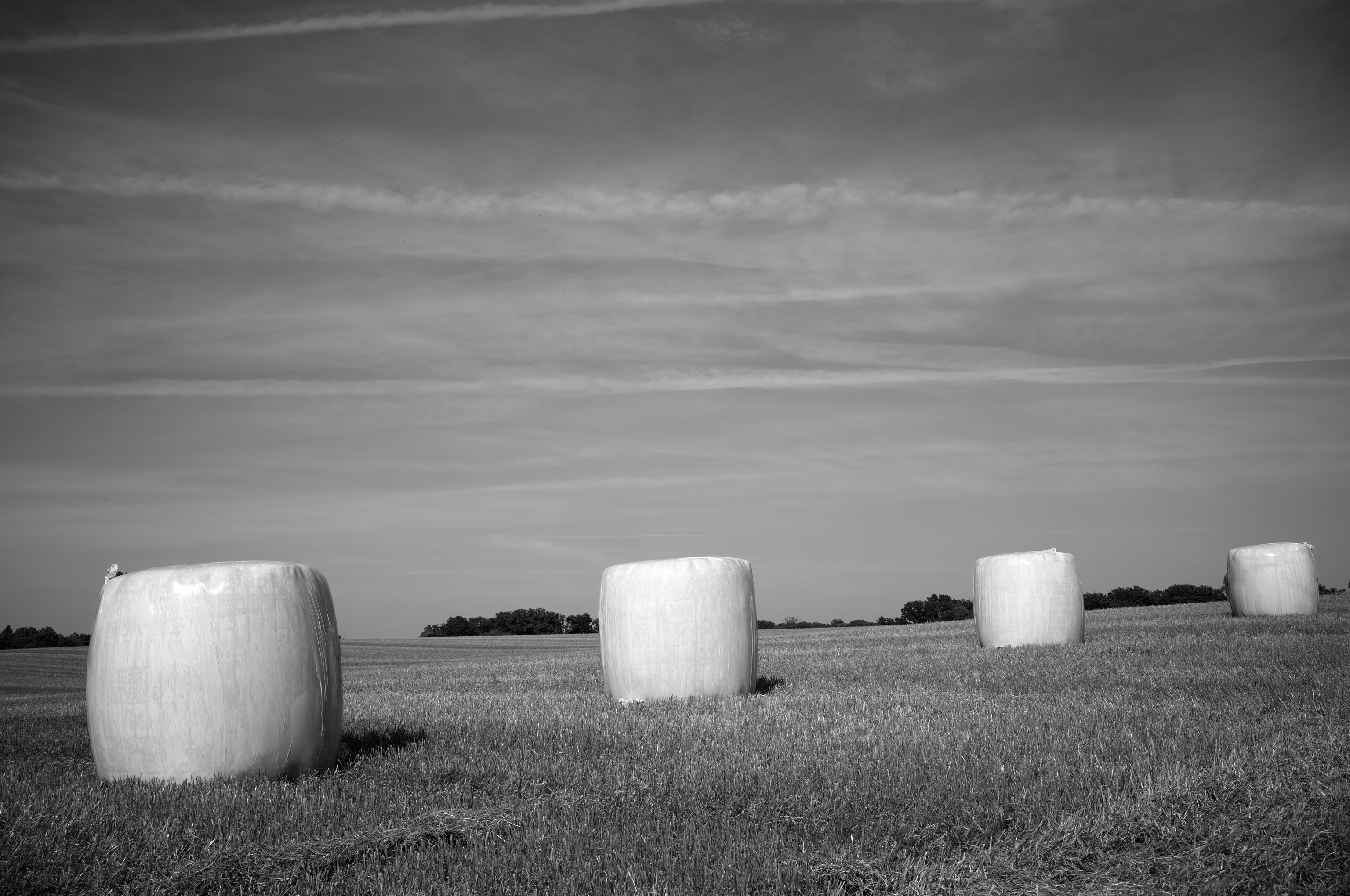 Heurollen auf einem Feld bei Schwalmtal. Die scheinen ganz neu zu sein, der Bauer hat sie noch gar nicht ausgepackt…