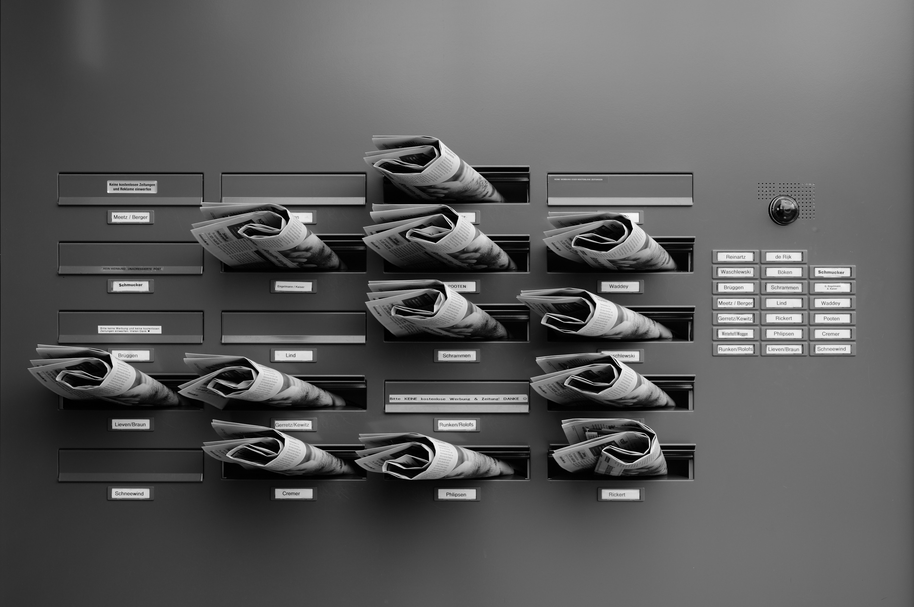 Briefkästen mit Zeitungen in Schwalmtal.