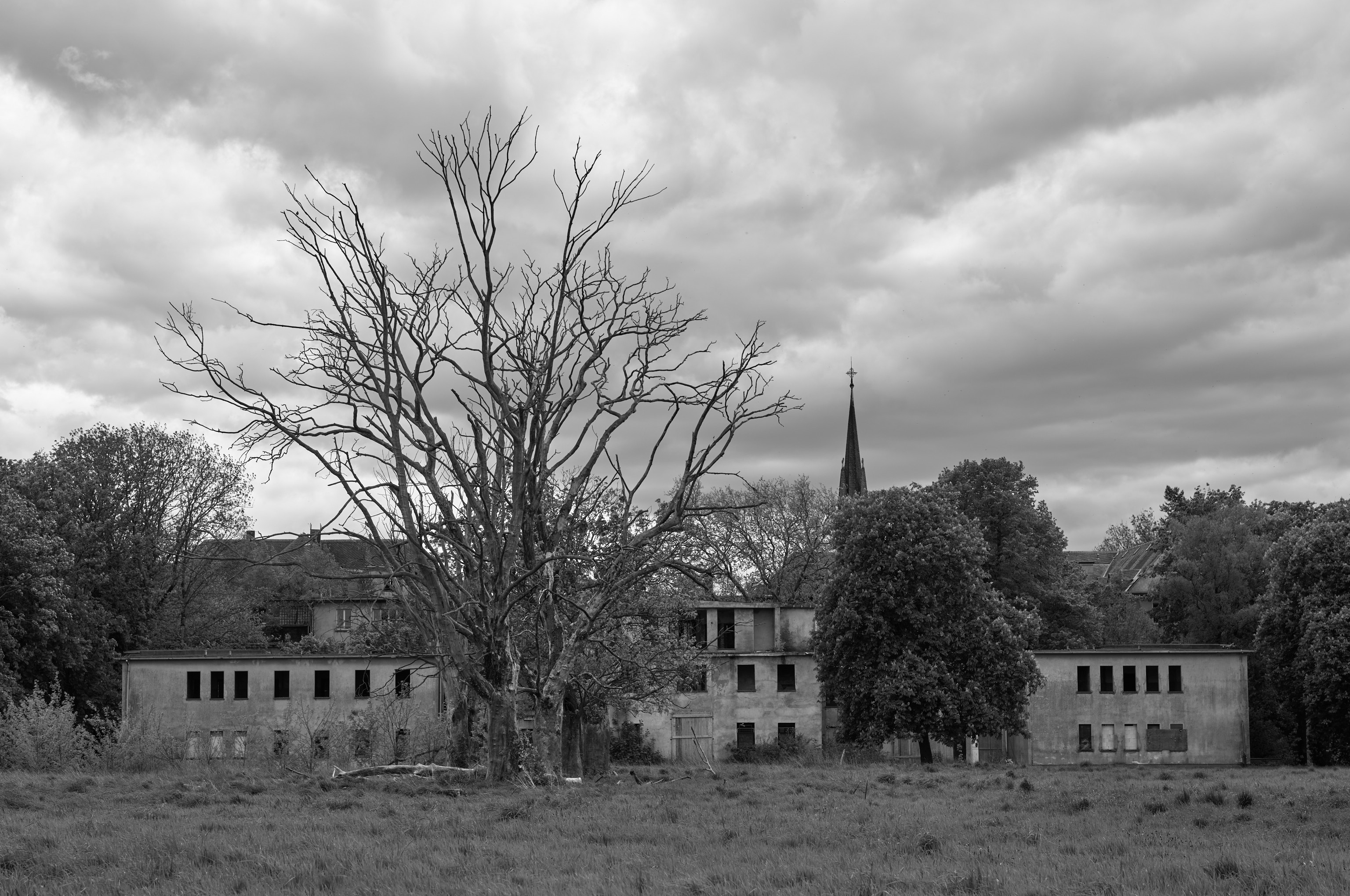 Blick auf die Überreste der früheren „Heil- und Pflegeanstalt Süchteln-Johannistal – Abteilung Waldniel“ in Hostert. Trotz der Gebäude ist das in meinen Augen eine Landschaftsaufnahme. Architekturlandschaft?